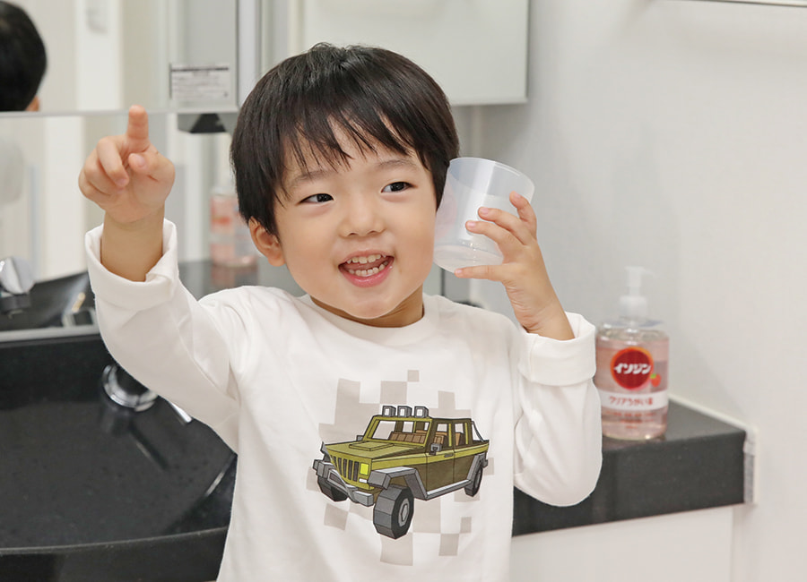 「キャンディーみたい」とアップル風味の香りがお気に入りの祐翔くん。朝の身支度後、帰宅後はママと一緒にうがいをするのが習慣になりました